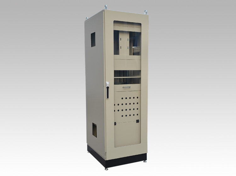 柜體框架、前門、后背板、頂板、底板、安裝板、4個(gè)運(yùn)輸?shù)醐h(huán)、三點(diǎn)式門鎖